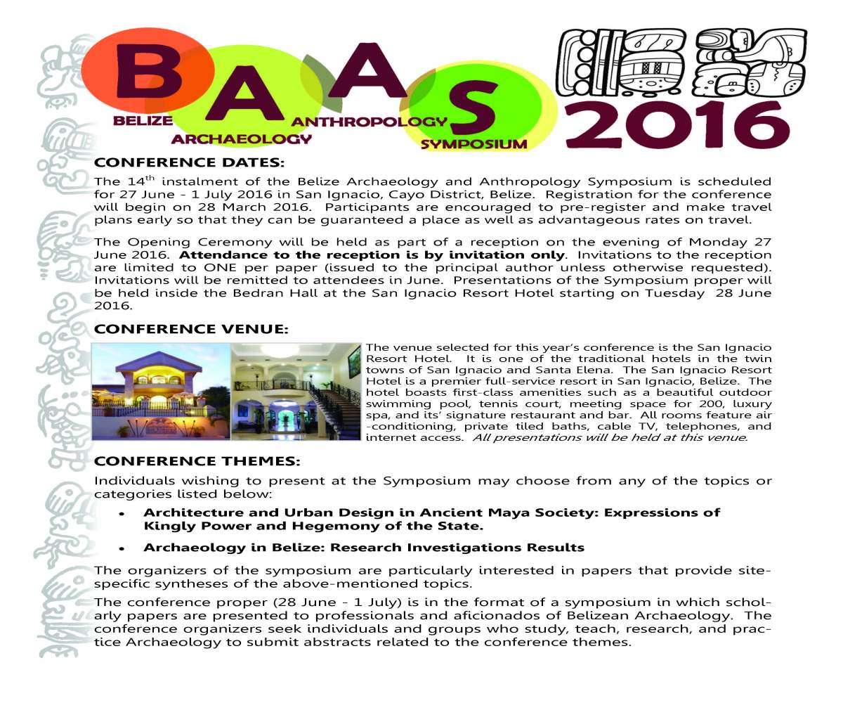 Call for Papers 2016_Page_1 Published February 1, 2016 at 4131 × 3443 in Belize Archaeology & Anthropology Symposium (BAAS) 2016 ← Previous